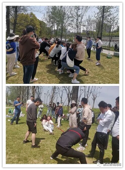 资深春游达人白居易曾写过 “逢春不游乐,但恐是痴人” 春光明媚,草长莺飞 繁花盛开,不负好春光 春季正是撒欢的季节 4月25日,浙江佰铭又一次组织 家人们进行了春季团建 伴随春韵,享受一场心的雀跃 蓝天白云,柳枝垂青,处处彰显春天的味道。就在这美丽的塘江边,小伙伴们都准备大显身手。 (烧烤大军) 美厨娘,美厨郎们纷纷上线,摘菜,生火的生火。掐菜切菜的麻利手快。四个烧烤架同时开火,红灿灿的火苗伴随烤架上的食物发出的阵阵滋滋声,烤羊肉串、烤牛肉串、烤秋刀鱼、烤韭菜、烤红薯....的香味四溢,早已让饥肠辘辘的小伙伴迫不及待的拿起这色香味俱全的美味烧烤来一次饕鬄盛宴,久久回味。      美好的时光总是短暂,但美好的记忆会存留心底。     一次团建踏青,人将自己交给丰盈的世界,世界也将自己交给人。生之趣,活之乐,美之魅,尽在其中。     希望接下来的时光里,家人们能够带着这份丰盈在工作岗位发挥自己最大的潜能。多多创造属于自己独特记忆的2020。振奋人心的拔河比赛,随着一声哨响,双方家人都紧拉绳索,身体后倾,共同使力。现场气氛热烈,拉拉队的呐喊声、加油声响彻赛场。转瞬间,比赛进入了白热化,绳子上的标记,在两队的中线间不断来回移动,同学们将永不言败的精神展现得淋漓尽致